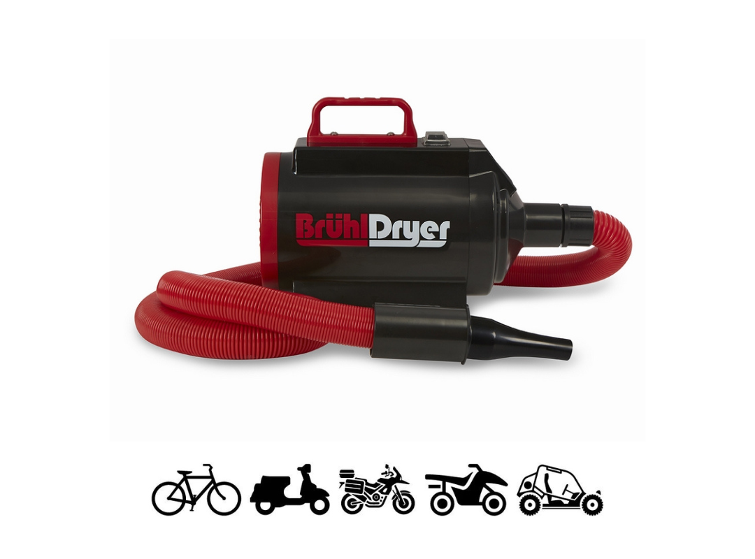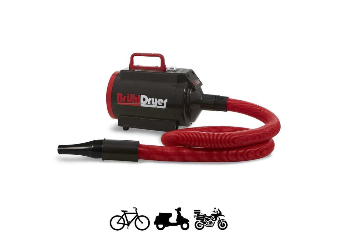Le Brühl MD1400 est notre petit modèle, particulièrement bien adapté aux vélos et VAE. Il est très maniable grâce à sa taille compacte et à son faible poids. La turbine de 1.400 watts apporte la puissance parfaite pour éliminer toutes les accumulations d'eau.